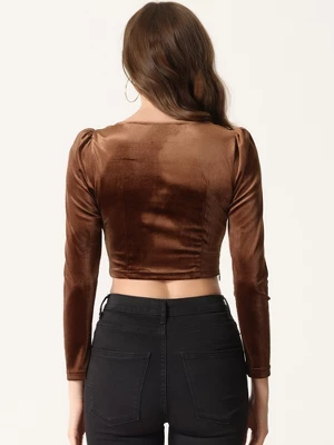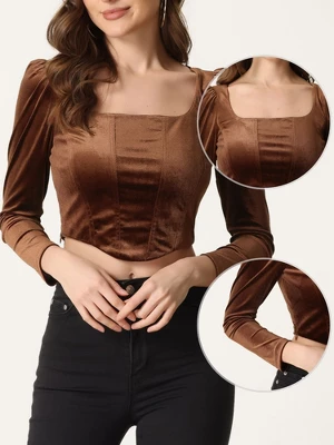 - This velvet blouse is made of several design points: long Sleeve, Square Neck, Solid Crop Top