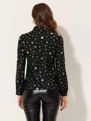 This long-sleeve piece has shiny gilding stars and metallic buttons. The Casual Blouses offer more imagination and you will look wonderful in new star blouses. Sure to be your go-to for the event season ahead, this blouse is a party-perfect top. Crafted from comfortable fabric for ease of wear and features a twinkling star print, the blouse is shaped by button fastening. Whether you’re out to date or going to work, this soft shirt provides cozy and style for your day ahead and keeps you comfortable. Our glitter star pattern and metallic buttons blouse allow you to get eye-catching day and night.