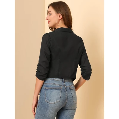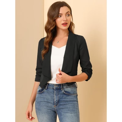 - Open Front, Crop Style, Shawl Lapel