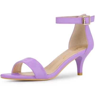 - Cushioned Footbed, Adjustable Ankle Strap with Buckle Closure, Open Toe, Kitten Heels