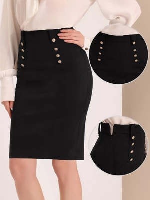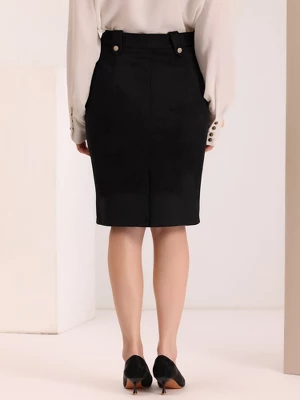 - This skirt is made up of several design points: buttons decor, faux suede, pencil skirt