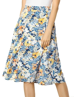Slit floral skirts add vivacious style to your wardrobe. Complete your summer ensemble with this split floral skirt. Cut in an a-line silhouette with a split hem at the front for easy on and off wear. A bold floral pattern is an eyecatching design on this simple skirt. Pair it with everything from a cami to solid color tops, high heels to sandals.