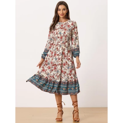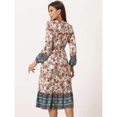 Completing the design is the elastic waist for highlighting your curves. The boho floral print adds a touch of whimsy and femininity, while the long length exudes an air of sophistication. The midi dress features an elastic waist that provides a flattering fit and accentuates your curves, while the side zipper ensures easy wearing.
