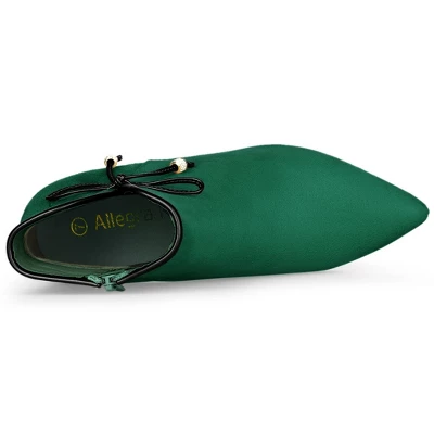 The stiletto high-heel ankle boots are hot in trend and fashion and even better in a trendy bow decor. They are crafted from faux suede, and set on a sturdy 80mm stiletto heel. Zipper closure design, convenient and time-saving. Wear them with everything from denim to tailoring. Faux suede vamp, more textured. Rubber Outsole and ABS heel, anti-slip effectively. Moderate heel height, makes you feel more comfortable. The stylish V-shape heel ankle boots can make you look more elegant at the side angle and make your legs more slender.