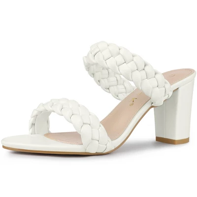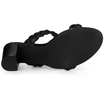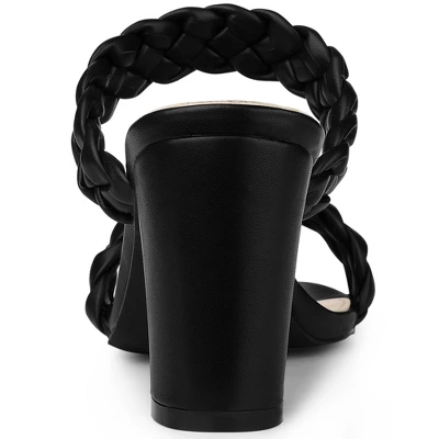 - Slip-on, Chunky Heels, Open Toe, Braided Slide Sandals, Block Heels, Dual Strap
