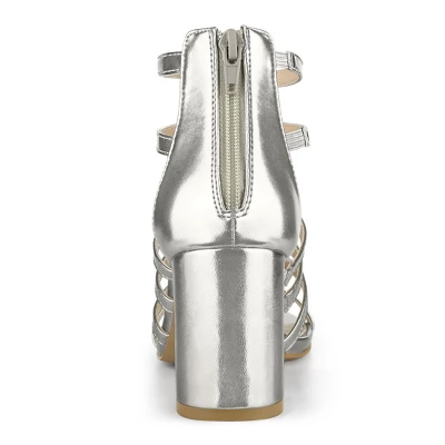 - Roman Heels, Strappy, Chunky Heel, Back Zipper