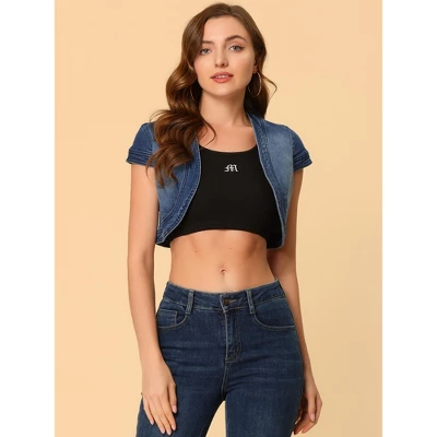 - Cropped, Open Front, Collarless, Cap Sleeve, Jean Shrugs