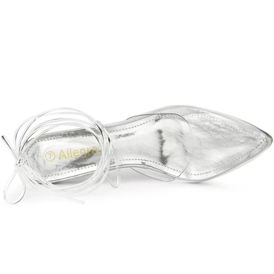 - Lace-Up, Pointed Toe, Clear Heels, Stiletto Heel, Heel Sandals, Pumps