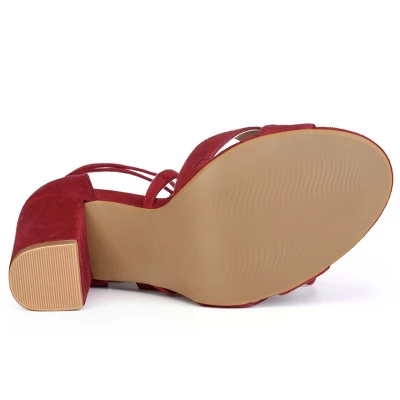 A pair of block-heel sandals feature a simple ankle wrap with a crisscross design. Knot the ties into a pretty bow at the back to make a lasting impression as you walk away. Easy to go with all outfits, wear them with jeans, trousers, dresses, shorts, or denim. Perfect for dating, working, hanging out, prom, music festivals, casual, and parties. Elevate your body type and make you naturally look comfortable in your skin and body. Faux suede vamp, more textured. Rubber Outsole and ABS heel, anti-slip effectively. Moderate heel height, make you feel more comfortable.