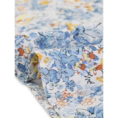 - Floral Print, Square Neck, Short Puff Sleeve