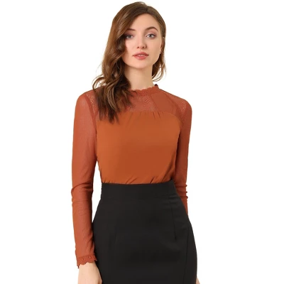 The floral lace makes this gauzy top a romantic night-out option. Floral embroidery embellishes the lace of a romantic blouse with a ruffled neck trim. Turn on the charm in this lacy blouse cut with a keyhole back and delicate frilled cuffs. Timeless charm evokes itself in this homespun blouse that’s decorated with lace. Lacy sleeves add texture and movement to a top that exemplifies vintage refinement. Made of airy eyelet lace, this swingy top nails that whole peasant thing with pretty shirring neck.