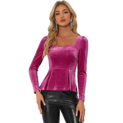 Elevate your style in this peplum top made of soft velvet. The sweetheart-neck vintage velvet blouse is an expert when it comes to making a gorgeous impression. Perfectly pair it with leggings or jeans for a beautiful and fashionable look. This velvet blouse is perfect for matching everything high-rise in your closet. When it comes to pairing this beautiful velvet peplum top with other clothing, the options are endless! For a casual yet chic look, consider pairing it with high-waisted jeans and ankle boots. Or, for a more formal occasion, try pairing it with a midi skirt and heels. You could even layer it under a blazer for a sophisticated office look. Whatever your style may be, this versatile top is sure to elevate any outfit you put together. The vintage blouse features a sweetheart-neck that is sure to leave a lasting impression.
