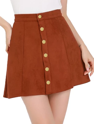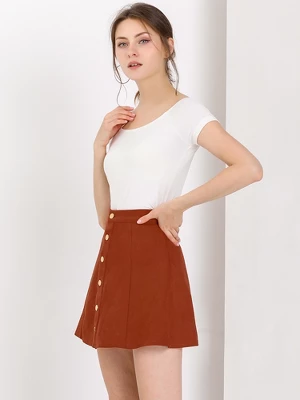 Sleek, simple, and short, this skirt exudes 70s-style charm thanks to wide panels of soft fabric, exposed button closure, and vintage coloring. This skirt features a buttoned front and flaunts an A-line silhouette. It is perfect for pairing with booties and a simple chic top. The skirt with comfortable fabric is paired perfectly with pretty chic heels for a fashionable and sophisticated look.