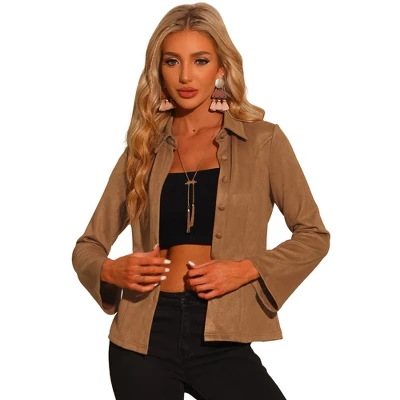- Faux Suede Fabric, Point Collar, Button Down, Long Sleeve, With Pockets, Vintage Vibe
