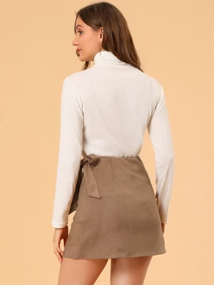 Casual, simple, and mini style, a skirt exudes retro style charm thanks to soft suede and exposed vintage coloring. It features a tie knot waist, wrap design, and elastic waist back. Perfect for pairing it with booties and a simple chic top. This retro skirt brings you fall sense and enhances your wardrobe style. Soft and lightweight suede makes this skirt breathable and flowy, which is suitable for any occasion and season.