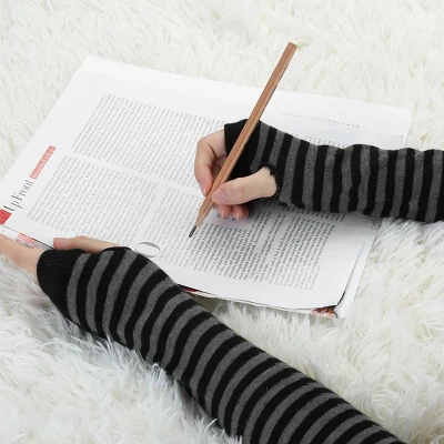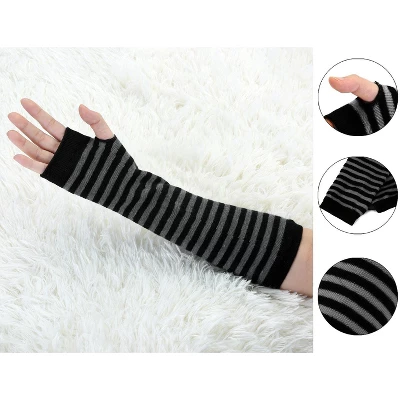 - Style: Fingerless; Suitable for Women & Men; Pattern: Stripe; Color: Dark Gray Black