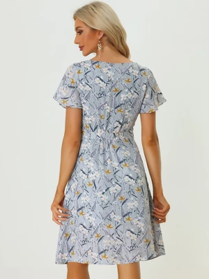 - This dress is made up of several design points: flutter sleeve, gathered neck, waist dart, lined, below the knee, elastic back