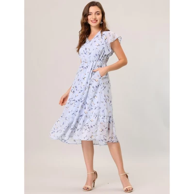 - This midi prairie dress details with ruffle design and fresh flower print show off your feminine and charming