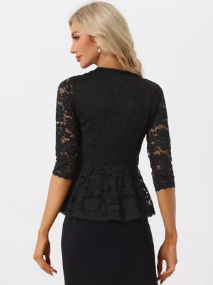 This Allegra K’s women’s lace top is so elegant. Featuring a front keyhole and 3/4 sleeves, this top is a very stylish. This ruffled top is designed in a solid color, simple but with a atmosphere. Bring femininity to your look with this lace top. You can wear this top to any occasion and it will give you confidence.