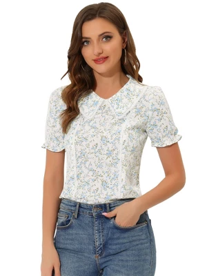 Creates a charming look with this floral lace trim blouse. Soft and lightweight fabric and elastic cuffs make this top breathable and comfortable to dress up and down. Pair it with skinny jeans or high-waist pants for a chic look. Occasion: Casual, Dating, Shopping, Daily Wear, Work, Weekend Gathering, Holiday, etc.