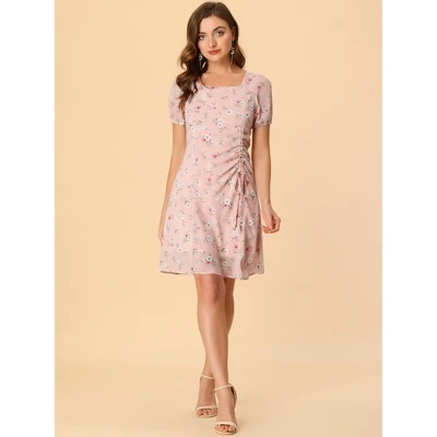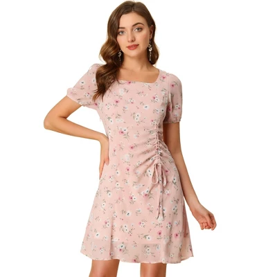 - Drawstring Ruched Front, Knee Length, A-Line Summer Dress