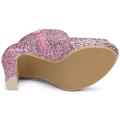These glitter boots have a peep toe, a chunky heel, and a zipper closure. The shining glitter upper part gives these boots a fashion feel, and the heels are perfect for a night out on the town. The open design provides breezy comfort for your feet. With the moderate heel height, the heels make you feel more comfortable. Team them with your favorite dress and colorful accessories for a glamorous party look this season. Great for your mother, girlfriend, sister, or friend as a gift.