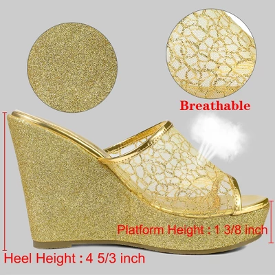 - Slide Wedges, Platform Wedge Sandals , Slip on, Glitter Mules, Mesh Upper