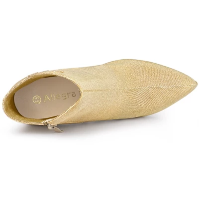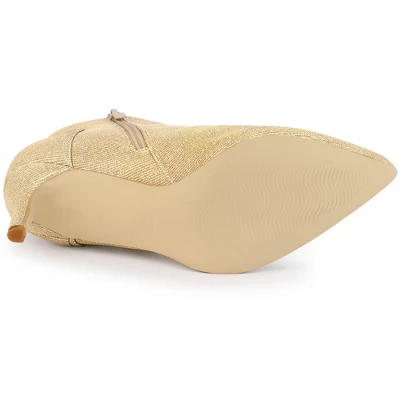 - Glitter Ankle Boots; Stiletto Heel; Pointy Toe; Zipper Booties