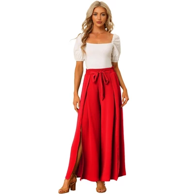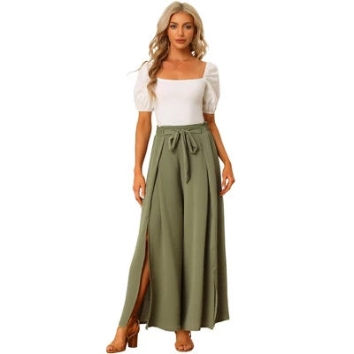 Comfortable high quality, elastic tie, high waisted wide leg pants you can dress up or down easily.Not see-through, lightweight, and flowy.High-waisted pants with elastic waistband and tied belt.The material drapes in the most flattering way and you can easily get a chic look.Pair these wide-legged pants with a graphic tee for an effortlessly chic look.You can match them with a fancy shirt and high heels, or leggings for a casual everyday look.