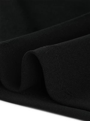 - Elastic Waist Back, Invisible Side Zip, Ruffle Contrast Trim, Side Slit, Below the Knee Length