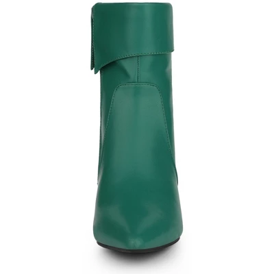 Boots are centered around chic, understated style for a versatile wardrobe. Crafted from faux leather with a sock-like feel, these fold-over ankle boots feature a kitten heel for a classic-chic style. Foldable Ankle Boot; Kitten Heel; Fold-over; Vamp: Faux Leather; Outsole: Rubber; Heel: ABS; Heel Height: 2 1/6 inches; Shaft Height: 6 1/2 inches.