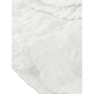 - Lace Sheer, Ruffle Trim, 3/4 Sleeve, Stretchy Textured Fabric,Ruffle Cuffs, One Button Front