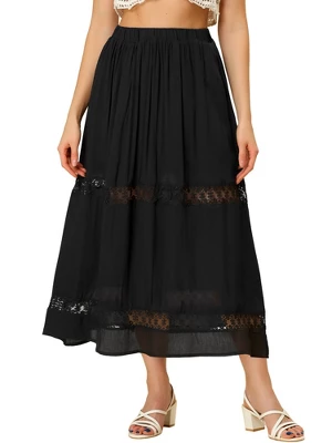 Keep Things Sophisticated in A Feminine Look on This Hollow Out Lace White Maxi Skirt. Endless versatility and unfettered comfort make this feminine skirt nice to wear. Whether twirling across the dance floor or sitting for a length of time, the graceful skirt keeps simple and comfortable. Blanketed in pure color and styled with a comfy elastic waist, this sweeping maxi enlivens any day-to-night ensemble.
