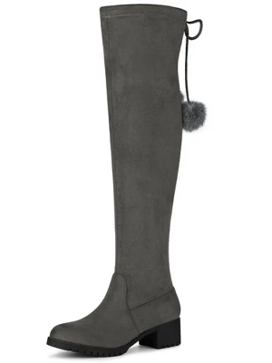 - Over the Knee High Boots, Lace Up, Fur Decor