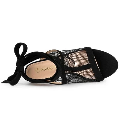 A pair of high heels featuring an open toe with a lace-up strap, chunky heels, and comfortable faux suede material with soft insole ends. A wrapped, block heel grounds a trend-right sandal topped for a chic update to your season-spanning wardrobe. Paired well with jeans, and a skirt. Suit for adults and females. Occasion: Party, Office, Casual, Christmas Days, Dating, Evening.