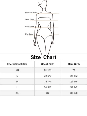 | Size | Numeric Size | Bust (inches) | Waist (inches) | Hip (inches) |