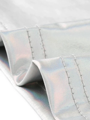 This top features a shiny metallic finish that catches the light perfectly. The cropped length makes it perfect for being paired with high-waisted pants or skirts, and the fitted design accentuates your curves for a flattering silhouette. This top is perfect for any special occasion, from a night out with friends to a holiday party or even a New Year Eve celebration. Dress it up with statement earrings and strappy heels or keep it casual with sneakers and denim shorts. Make a statement and stand out in this eye-catching metallic party top!