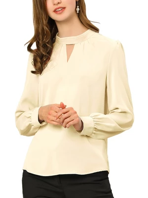 - Keyhole Neckline, V-neck, Button Cuff, Keyhole Button Back, Long Sleeve, Vintage Blouse