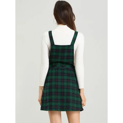 Add a versatile layer to your new-season wardrobe with this suspender dress. It features a simple and classic design with above-knee length and an A-line silhouette. The front button and button decor underscore the casual cool of these plaid-printed overalls. It is great for being paired with a solid color top and bag for an everyday look!