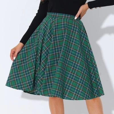 Updating your plaid collection with this tartan skirt that features a swing flare hem. Pair it with a basic blouse and boots for a fashionable look. It can be easily dressed up and down all year round for many occasions such as daily wear, travel, school, parties, and dancing. It is made to sit high on the waist for a flattering silhouette.