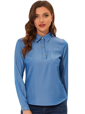 Classic and vintage blouse for ladies, this casual button shirt for women is suitable for spring, fall, and winter. This long-sleeved half-placket shirt is made of breathable, lightweight, and comfortable fabric, friendly to the skin. Chambray denim blouses are easily matched with handbags and other accessories. Team with ripped jeans pants or capris for your fashion ensemble.