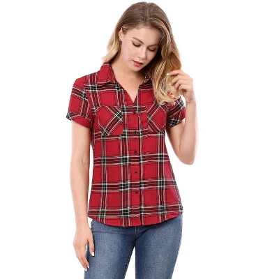 The classic plaid shirt can be mixed easily with a variety of styles. This plaid short-sleeved cotton shirt will become a quick go-to in your wardrobe. Style it with your favorite jeans or skirts for a casual look. Perfect for going out and traveling with friends. Occasions: Beach, weekend, gathering, daily, and so on. NOTE: 100%. Cotton: Red/ Green/ Blue/ Orange/ Yellow/ Brown/ Red Blue/ Brown Beige. 50% Cotton, 50% Polyester: White Black/ Beige Red/ Burgundy/ Red Black. 100% Rayon: Dark Green. 65% Polyester, 35% Cotton: Green Beige. 80% Polyester, 15% Rayon, 5% Spandex: Light Green. 95% Polyester, 5% Spandex: Pink.