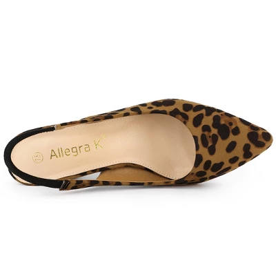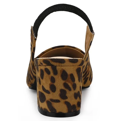 - Slingback Heels, Block Heel, Leopard Printed