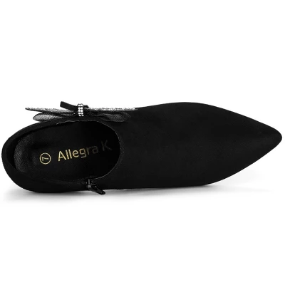 The stiletto-heel ankle boots, are hot in trend and fashion and even better in a trendy bow decor. They have been crafted from faux suede, decorated with rhinestones, and set on a sturdy 80mm stiletto heel. Wear them with everything from denim to tailoring. Ankle Boots; Stiletto Heel; Pointed Toe; Vamp: Faux Suede, Outsole: Rubber(non slip); Heel: ABS; Heel Height: 3 1/7 inches.