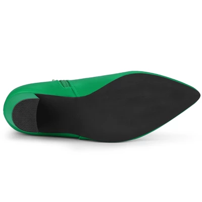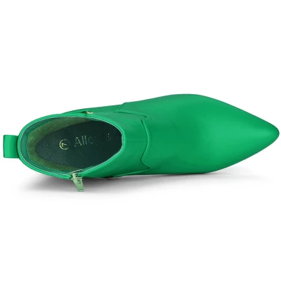 With a simple pointed toe and stable chunky high heels, the faux leather upper gives these a fashion feel. Pointed-toe design, elegant, pretty, polished, and dressy, lengthen the leg line. Create Modern Retro Charm. This pair of Ankle Booties perfectly match your coats and jackets. Zipper Closure, easy to wear. Faux leather vamp, makes your boots look more textured. Rubber Outsole and ABS heel, anti-slip effectively. Moderate heel height, makes you feel more comfortable. Shaft Height: 5 1/4 inches; Heel Height: 3 5/9 inches.