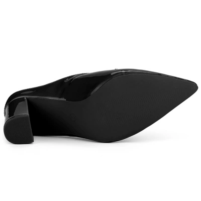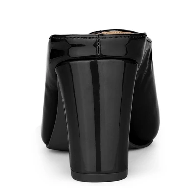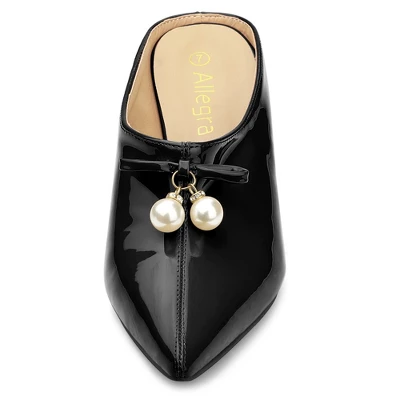 - Pearl Decor, Pointy Toe, Block Heel, Slip On, Slides Mules