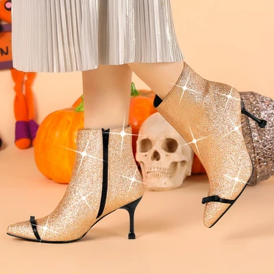 These pointed-toe ankle boots feature the bow decor and stiletto heels, which are fashionable. It will be great to pair them with dresses, skirts or jeans to complete a party, fashion look. They flatters every skin tone, and they are stylish and modern. Pefect to be a gift for your sister, friend or girlfriend.