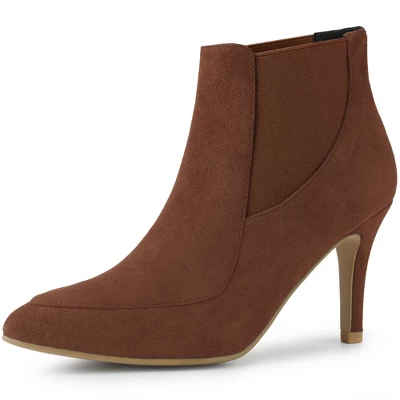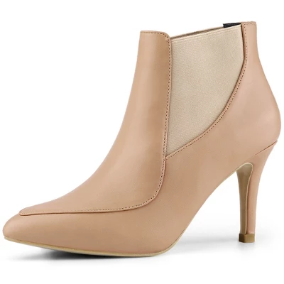 The elastic gore insets relax the sculpted shaft of these Chelsea booties. These boots feature a pointed toe and a stiletto heel. Well paired with skirts, dresses, or jeans. Perfect for the office, interview, party, casual, Christmas Day, dating, and evening. Please note that color may vary slightly according to monitor settings.