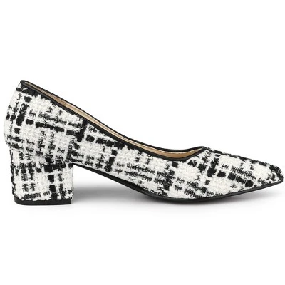 - Pointed Toe Pumps; Knitted Printed, Slip-on Closure; Block Heels; Low Heel