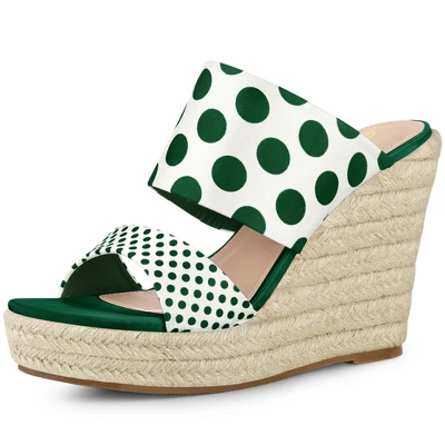 A polka-dot espadrille wedge adds leg-lengthening height to the chic platform slide sandals. Wear these sandals with your denim pants, and shorts. Adding a silk scarf is also a good choice for the beach. They are perfect for going to work or going out. Pair them with your favorite dresses, or skirts for a chic look.